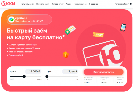 ЮККИ - автоматизированный сервис онлайн-займов, без справок и поручителей с онлайн поддержкой 24/7 и высоким уровнем одобрения.